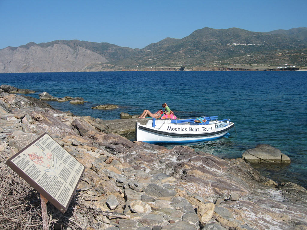 Cuando hace buen tiempo, es muy fácil nadar hacia el islote de Mohlós, mucha gente lo hace, o puedes organizar un viaje con un pescador local; pregunta en los cafés frente al mar. Habitada desde el período pre-palaciego, en la época minoica esta roca estéril era casi con certeza una península mucho menos estéril, y la lengua de arena que la ligaba al continente habría sido utilizada como puerto (los anclajes a los que se podía acceder desde cualquier lado eran gran ventaja para los barcos que pueden navegar solo antes del viento).